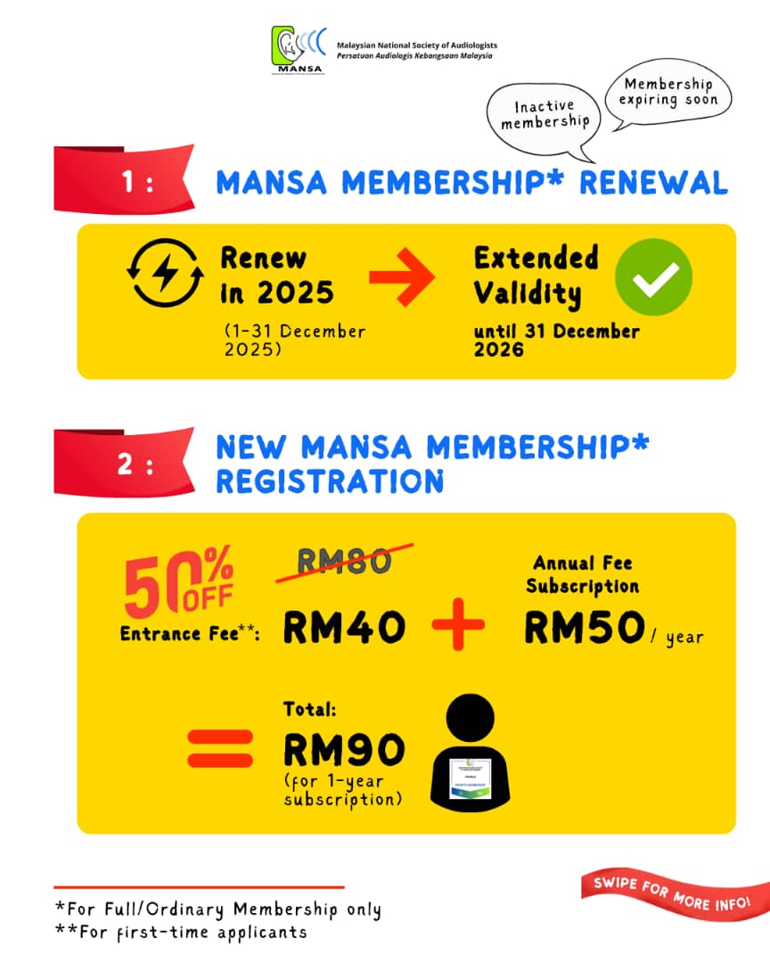 The Malaysian National Society of Audiologists (MANSA) or Persatuan Audiologist Kebangsaan Malaysia is the national professional association representing audiologists in Malaysia. MANSA is an active and one of the contributing members of the Audiology Committee under the Allied Health Professional Act.